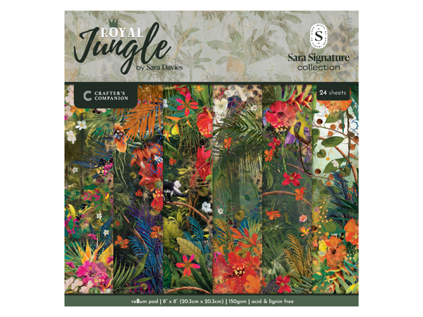 Give your crafts and projects a shimmer like light through the trees of the jungle with the Sara Signature Royal Jungle 8″ x 8″ Vellum Pad from Crafter’s Companion.
