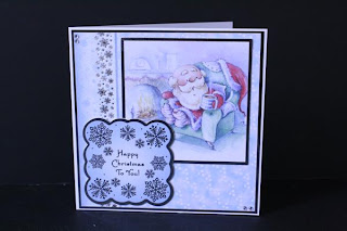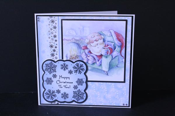 Gemma‘s card shows Santa have a hard-earned cup of tea once he’s back from doing the rounds on Christmas Eve. She’s used one of the topper sheets and card blanks from the Luxury Card Collection.