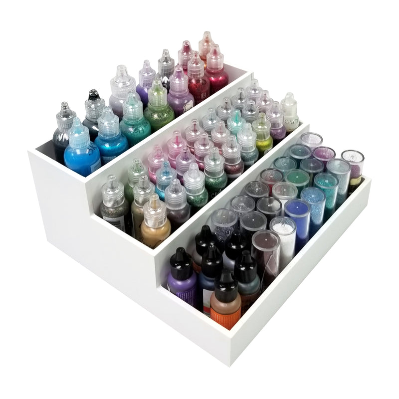 This desk top organizer will hold up to 80 small glitter glue, Stickles, or re-inker type bottles. Ideal for small glitter bottles too!