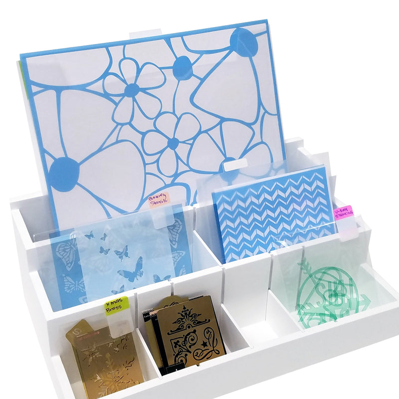 Organize stencils of all sizes using the Die, Stamp & Supply Organizer. Keep all your stencils and dies in plain view to easily grab what you need without having to dig around in drawers or boxes.