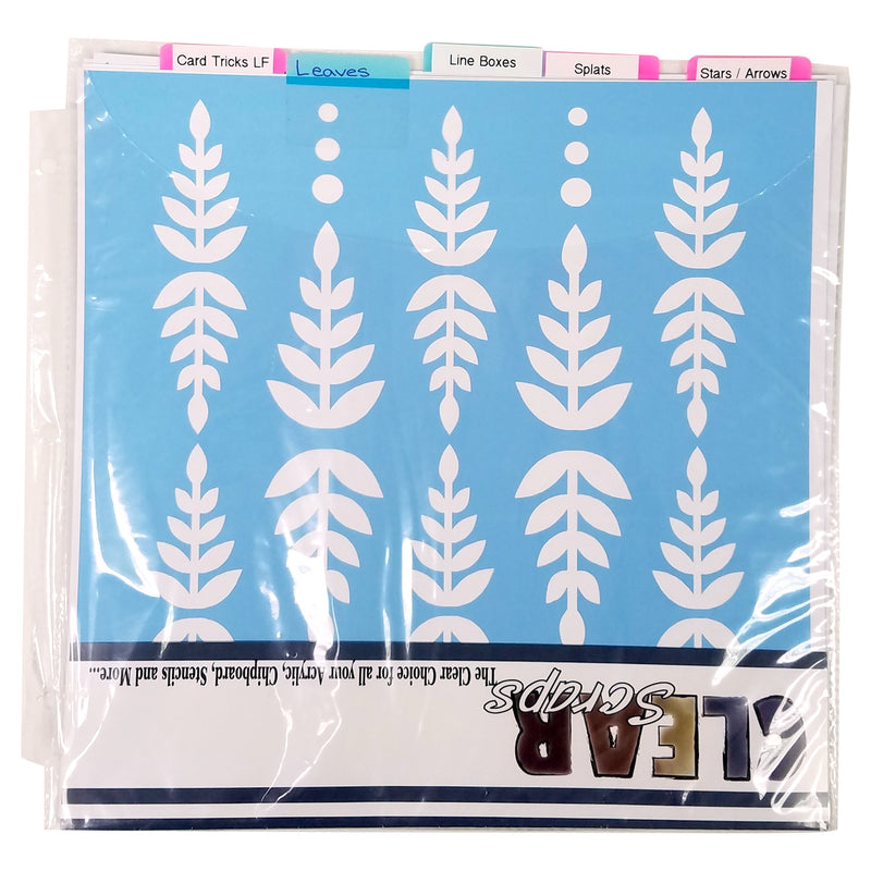 Easy storage for 12x12 stencils. Use our large Shut Your Flap Tabs to label each stencil. This 12.5" x 12.5" pocket page will hold up to 5 - 12x12 Stencils. Use these pages on a ScrapRack or in our 12x12 Craft Supply Binder.