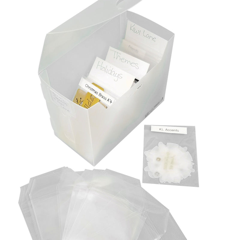 This Fab File is perfect for organizing small stencils, ATC stencils and Kiwi Lane Accent templates. Store each in one of our small Die, Stamp & Stencil pockets for a perfect mini-stencil file.