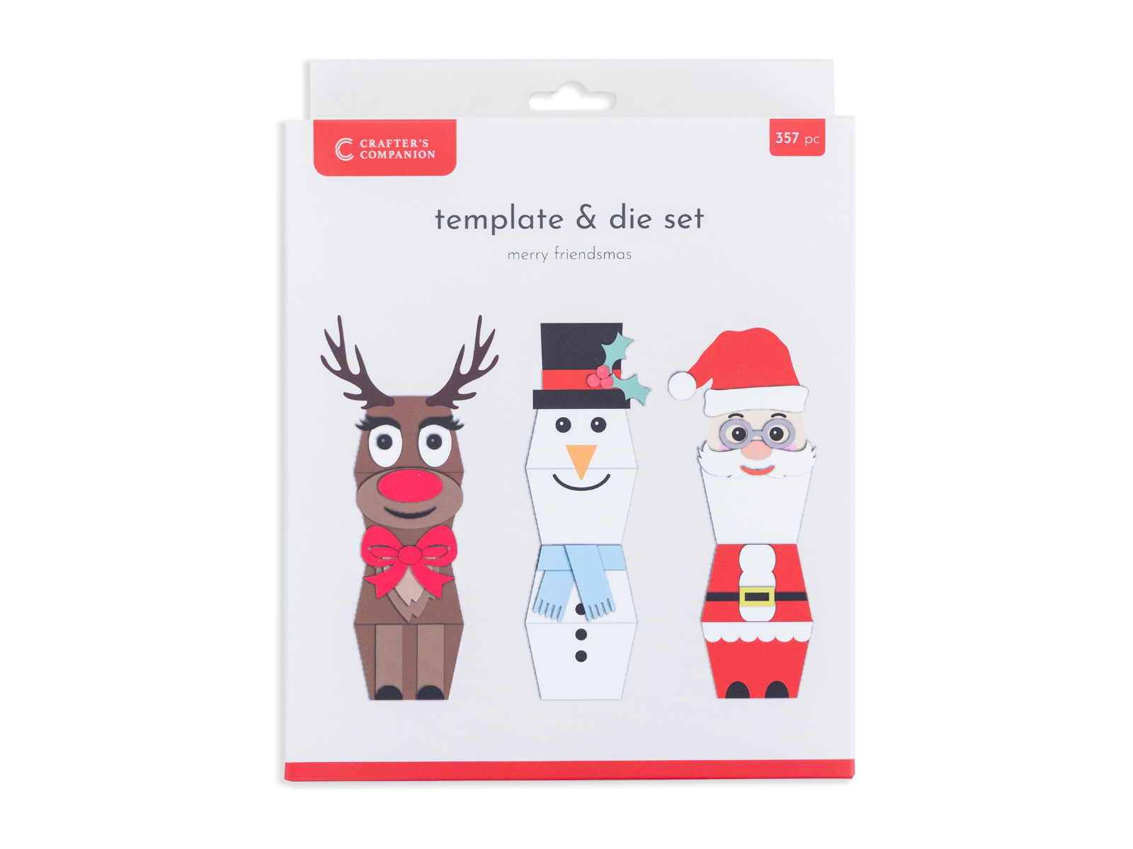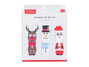 Add a pop to your Christmas crafting with the Merry Friendsmas Metal Die and Template set to create these 3D boxes. Using the template and included rubber bands, you can make your own Rudolf the Reindeer, Santa, and Jolly Snowman that can be the perfect Christmas gift or Christmas dinner table centrepiece.