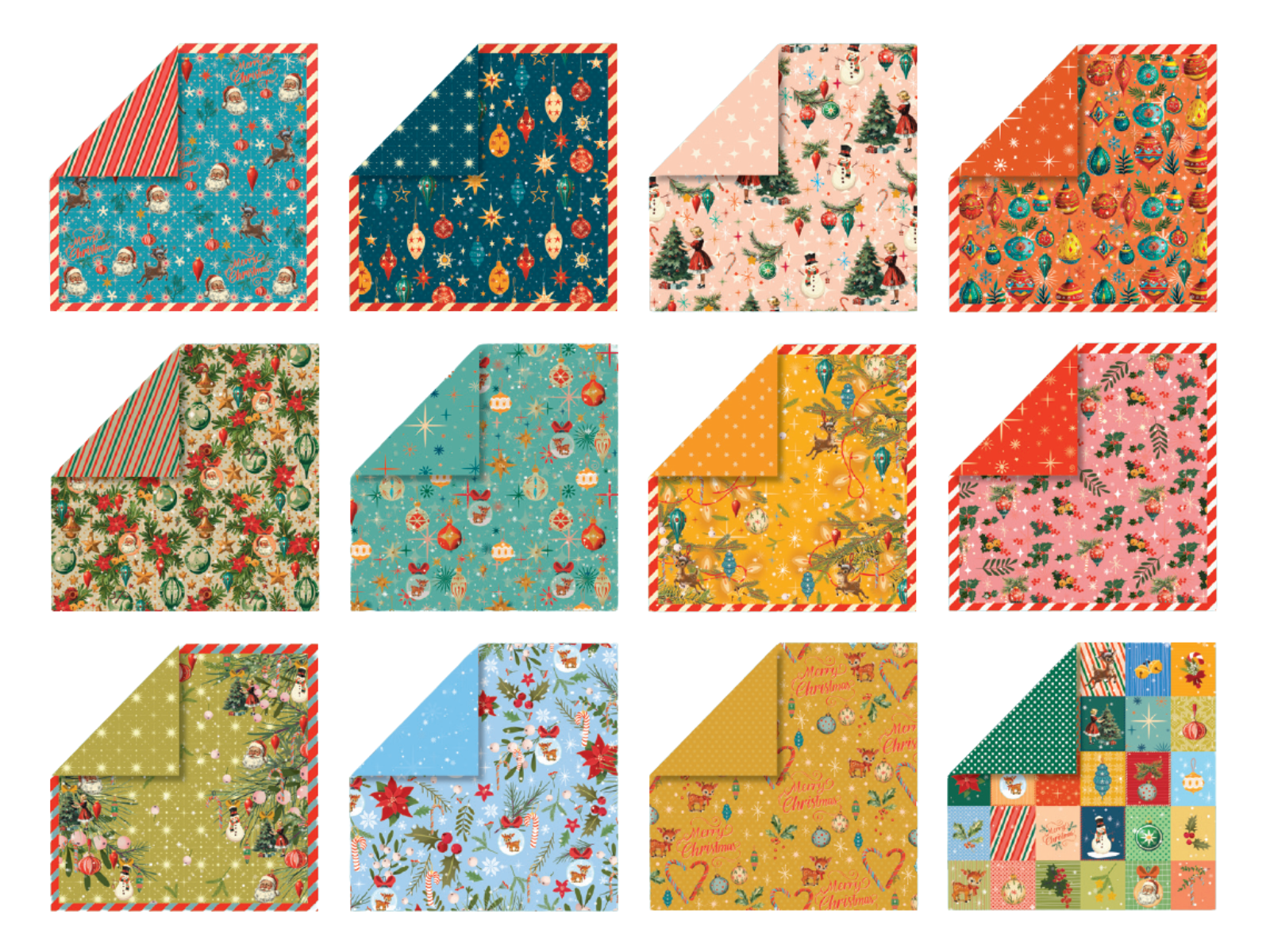 Each pad contains 36 double-sided sheets of paper in 12 designs inspired by classic Christmas images of candles, lanterns, and red, blue, and green colours. These double-sided sheets are perfect for a range of papercraft projects, including cardmaking, scrapbooking, and bespoke gift boxes and bags.