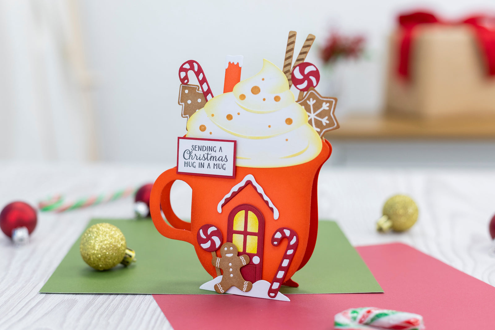 Warm your crafty soul with the Hot Chocolate Stamp & Die set from Crafter’s Companion. This set includes 15 metal dies and seven acrylic stamps to create a card base of an adorable hot chocolate house for a gingerbread, perfect for gifting as a handmade Christmas card.