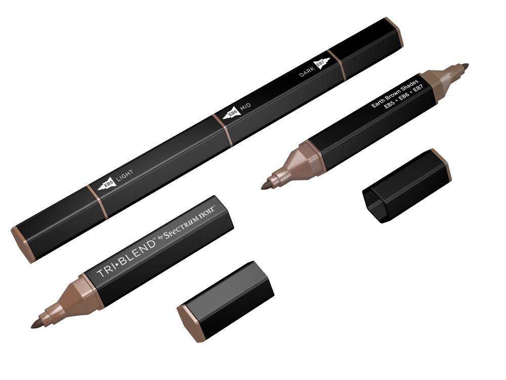 With its unique 3-in-1 design, Spectrum Noirs TriBlend Marker is a true break-through innovation for colourists. Inside each marker, there are three separate ink chambers, each feeding through to a fine-bullet nib, so you can experience three colours inside a single alcohol marker for the first time.