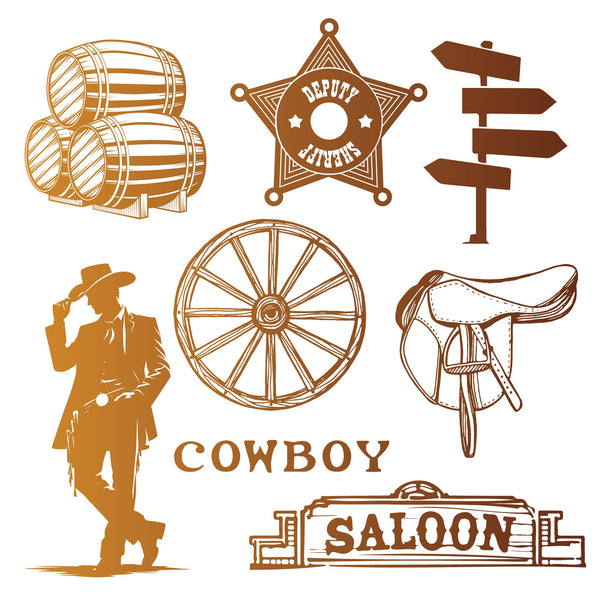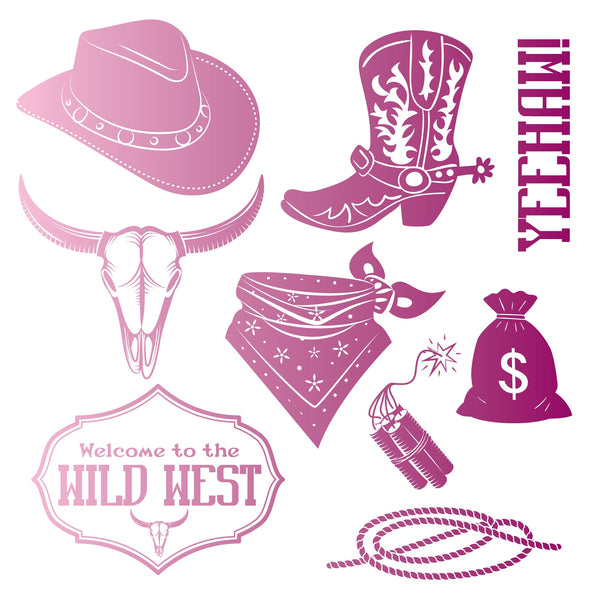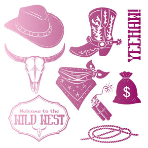 Decorate your handmade cards and invitations with sparkling cowboy boots, hats and more wild west-inspired designs with Crafter’s Companion Western Collection 6” x 6” Foil Transfers.